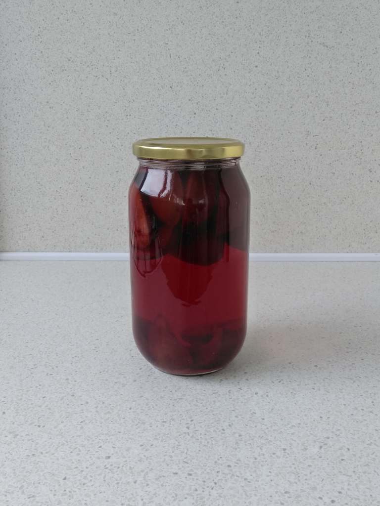 Измивате ягодите и ги поставяте в буркан. Посипвате ги със захар и пълните с вода. Запечатвате буркана и го поставяте в тенджера. Пълните с вода, докато бурканът се покрие. Поставяте тенджерата на котлон. 30 минути след като водата заври, компотът вече е готов. Изваждате го, докато още е горещ. Поставяте го с капачката надолу и чакате, докато бурканът изстине.