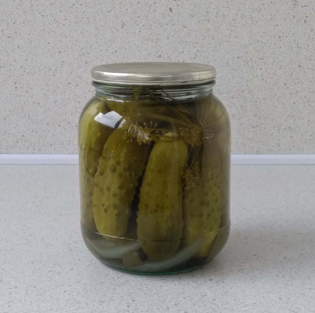 Измиваме корнишоните и ги слагаме в буркана. Поръсваме ги със сол и захар. Слагаме няколко зърна бахар и черен пипер. Добавяме оцет и малко копър. Пълним буркана с вода и го запечатваме. Поставяме го в тенджера и наливаме вода, докато не се покрие. Слагаме тенджерата на котлона. 30 минути след като водата заври, краставичките са готови. Изваждаме ги, докато още са горещ. Поставяме ги с капачката надолу и чакаме, докато бурканът изстине.